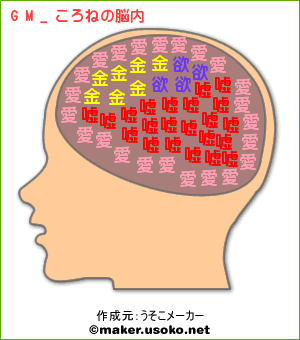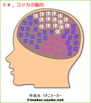 今日は、昔流行った「脳内メーカー」で、 GM達の頭の中を見ちゃいましょう♪ まず最初、ころねさんの中 http://blog.cnobi.jp/v1/blog/user/736f9b15b04bf53aa4e5806674932d90/1248028024 く、黒い・・・!?さ、さすg・・・ゲフゲフ。 あの愛らしい(?)クールな振る舞いの 中には、嘘や金欲が・・・!? 次、スネキチの中 http://blog.cnobi.jp/v1/blog/user/736f9b15b04bf53aa4e5806674932d90/1248028025 半分は秘密、あとは・・・本能に 忠実に生きてるのか? 「愛」はママンの分でしょう。 次、みすとの中。 http://blog.cnobi.jp/v1/blog/user/736f9b15b04bf53aa4e5806674932d90/1248028026 「愛」と「幻」はたぶん、あの独特の ヘッポコな口調のことでしょう。 リアルは秘密ってことで・・・。 しかし欲深いのは、動物だからですね。 最後に、ユッカの中。 http://blog.cnobi.jp/v1/blog/user/736f9b15b04bf53aa4e5806674932d90/1248028027 そのまんまだなおい!! 遊んで、休んで(サボって)、 Hなこと(一人で)して、欲望のままに ビールや酒を貪る・・・。 ダメダコイツナントカシナイト。 とまぁ、たまにはこんなのもどうかなと思って やってみました。 野球のオープン戦の4試合目は、なるべく 早くUPしますので、是非見ていってくださいね♪ マイリストをお気に入りに入れることを 推奨します(さりげなく宣伝) 今回はここまでです。次回も読んでくださいね~♪